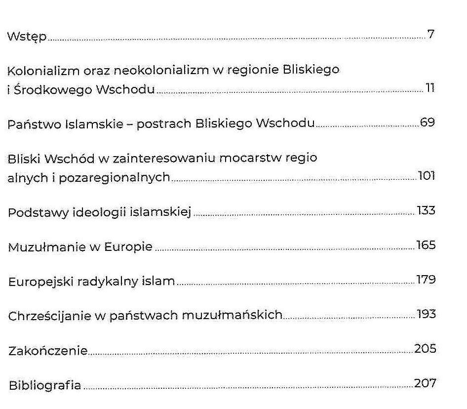 Interesująca, nieszablonowo wydana publikacja autorstwa dr Diany Rokickiej w przystępny sposób prezentuje Czytelnikom złożony problem relacji na linii Bliski Wschód – Zachód, wskazując na ich najistotniejsze determinanty oraz istotne związki przyczynowo-skutkowe. Dzięki temu Czytelnik ma szansę zapoznać się z założeniami polityki kolonialnej i neokolonialnej państw zachodnich w rejonie Bliskiego i Środkowego Wschodu, okolicznościami powstania i brutalnej działalności Państwa Islamskiego, przejawami rywalizacji regionalnych i pozaregionalnych mocarstw w tym rejonie wraz z charakterystyką przyświecających im interesom, a także podstawami ideologii islamskiej. Diana Rokicka opisała też sytuację muzułmanów w Europie, położenie chrześcijan w państwach muzułmańskich, jak również kwestię europejskiego radykalnego islamu. Całość składa się na ciekawą i – pomimo trudnej tematyki – przystępną oraz elegancko wydaną publikację.