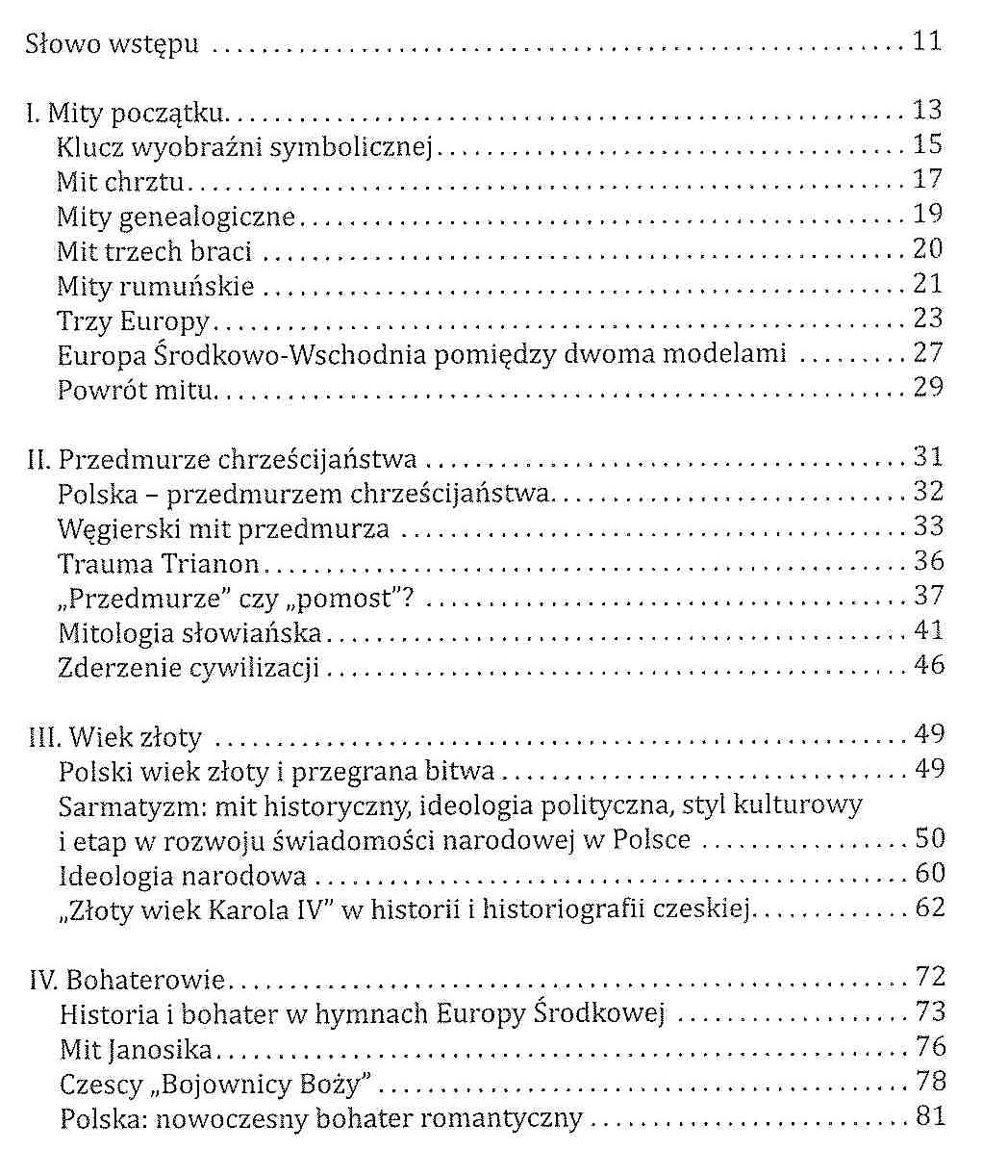 Praca poświęcona mitom obecnym dawniej i dziś w świadomości społecznej wybranych narodów środkowoeuropejskich, kwestiom procesu narodotwórczego oraz samoidentyfikacji zbiorowości ludzkich (koncepcje ojczyzny, rola języka narodowego, funkcje literatury, znaczenie stereotypów).
