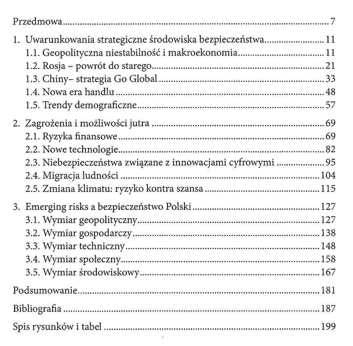 Celem niniejszego opracowania jest zaprezentowanie współczesnych trendów zmieniającego się strategicznego środowiska bezpieczeństwa, oddziałującego globalnie, regionalnie i lokalnie. Interdyscyplinarne podejście pozwala przedstawić czytelnikowi całe spektrum wyzwań, jakie stoją przed międzynarodową społecznością, wkraczającą w nową erę przemysłową. Monografia, została podzielona na trzy rozdziały. W rozdziale pierwszym przedstawiono uwarunkowania strategiczne środowiska bezpieczeństwa, które oddziałuje na świat. Dotyczą one oddziaływania na płaszczyźnie geopolitycznej, gospodarczej oraz społecznej. W rozdziale drugim przedstawiono zagrożenia mające wpływ na podmiot znajdujący się w środku zmieniającego się świata. Rozdział trzeci wskazuje na pojawiające się zagrożenia, oddziałujące na bezpieczeństwo Polski. Autor zdaje sobie sprawę, że nie wyczerpuje w pełni problematyki dotyczącej współczesnego wymiaru bezpieczeństwa. Niemniej ma nadzieję, że przedstawione kwestie wychodzą naprzeciw oczekiwaniom i staną się przyczynkiem do dalszej dyskusji na temat istniejących wyzwań bezpieczeństwa.