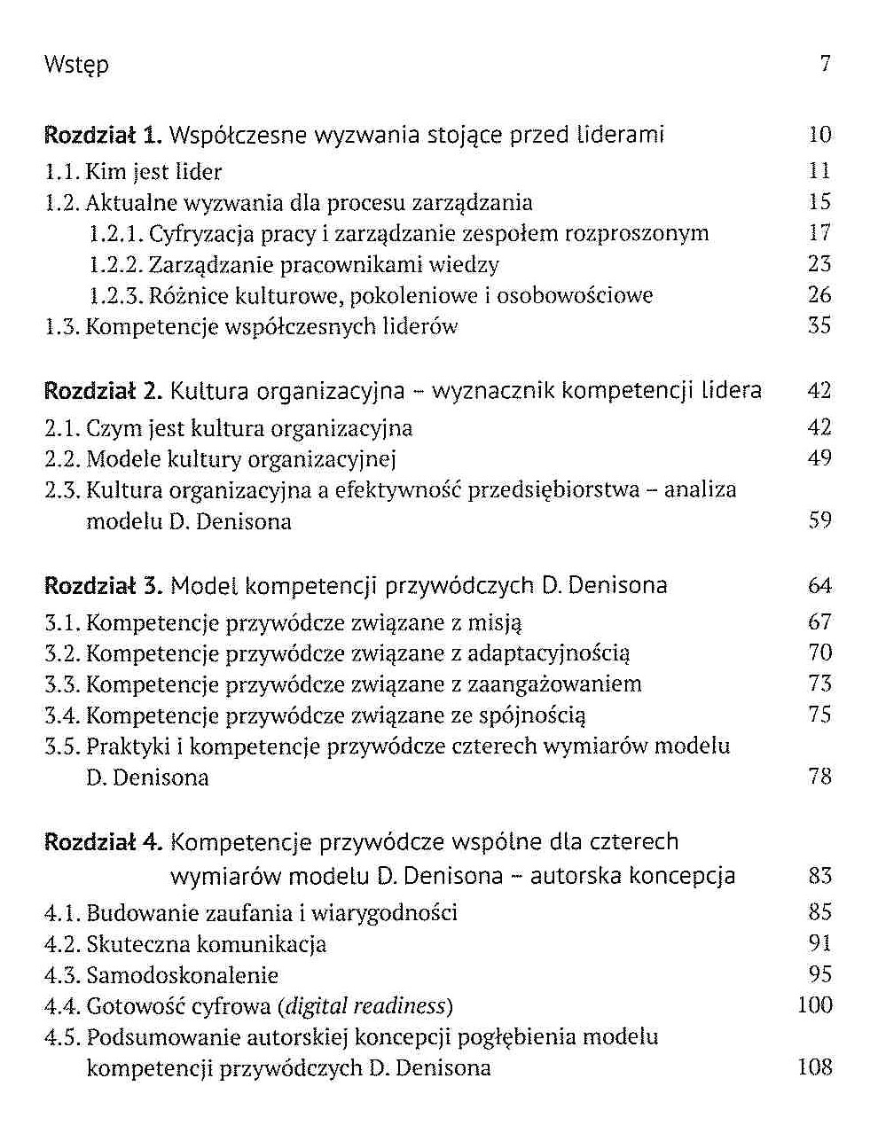 Prezentowana książka pomoże osobom rekrutującym rozpoznać profil kompetencyjny pożądanego menedżera-lidera, nie tylko w odniesieniu do uniwersalnych wyzwań przyszłości, ale przede wszystkim potrzeb i wartości organizacji, wyznaczonych przez kulturę organizacyjną. Publikacja w przejrzysty sposób przedstawia kompetencje lidera, dopasowane do poszczególnych wymiarów kultury organizacyjnej oraz proponuje możliwe narzędzia rekrutacyjne, zwiększające szansę na pozyskanie adekwatnego kandydata.