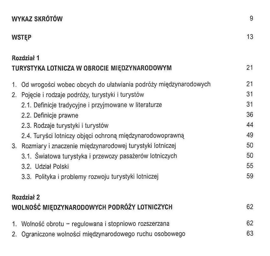 Publikacja jako pierwsza na rynku omawia ogólne zagadnienia dotyczące turystyki lotniczej w międzynarodowym obrocie i prawie. Przedstawiona jest w niej ewolucja w zakresie traktowania „obcych przybyszów” oraz w coraz szerszym określaniu i normowaniu statusu prawnego turystów, podróżnych i odwiedzających. Pokazany jest również wzrost znaczenia ekonomicznego turystyki i jej rozwój, w szczególności międzynarodowej i lotniczej. Głównym jednak przedmiotem analizy jest ogólny publicznoprawny reżim międzynarodowej turystyki lotniczej, który stanowi tło dla bardziej szczegółowego omówienia w kolejnym opracowaniu - części II, specyficznych (sektorowych) regulacji lotniczych i turystycznych, dotyczących ochrony ekonomicznych interesów pasażerów lotniczych i turystów. Nowym problemem opisanym w części I publikacji jest wpływ pandemii na turystykę lotniczą.