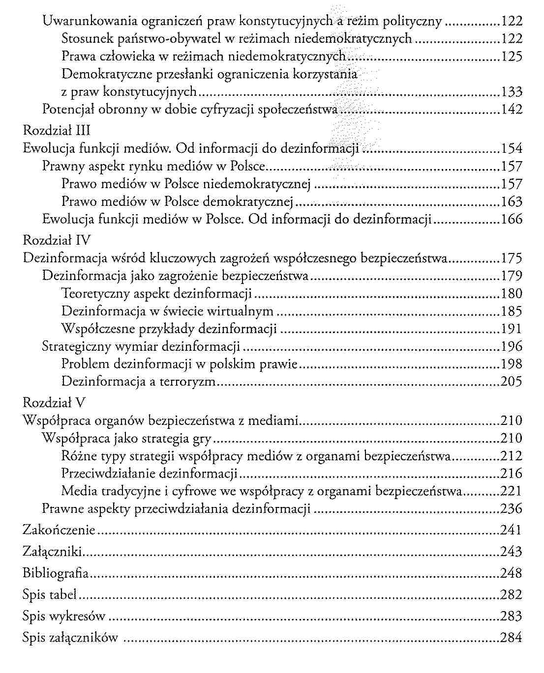 Celem monografii jest ukazanie istoty i konsekwencji dezinformacji w reżimach demokratycznych i niedemokratycznych wraz z omówieniem i zaprezentowaniem prawnych aspektów przeciwdziałania dezinformacji determinowanych reżimem politycznym w kontekście wzmocnienia potencjału obronnego państwa. Do realizacji założeń ukazania różnic na tle ustroju politycznego posłużono się analizą historyczną ustroju państwa polskiego podzieloną na dwa okresy: do 1990 roku i po 1990 roku.