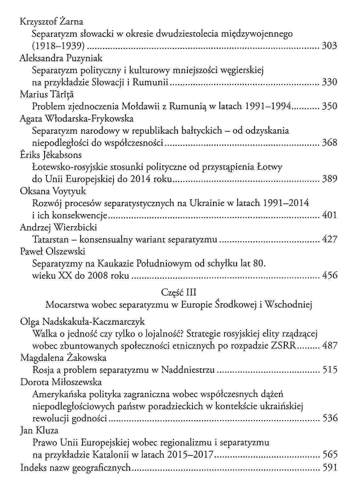 Publikacja ma na celu pokazanie wpływu dążeń regionalnych i separatystycznych na politykę wewnętrzną państw oraz na stosunki międzynarodowe w Europie Środkowej i Wschodniej zarówno w nieodległej przeszłości, jak i obecnie. Autorzy omawiają genezę wielu ruchów separatystycznych i regionalistycznych w tej części kontynentu, podkreślają zarówno cechy wspólne, jak i specyfikę każdego z nich ze szczególnym uwzględnieniem siły politycznej i kulturowej, a tym samym stopnia zagrożenia spójności współczesnych państw narodowych.