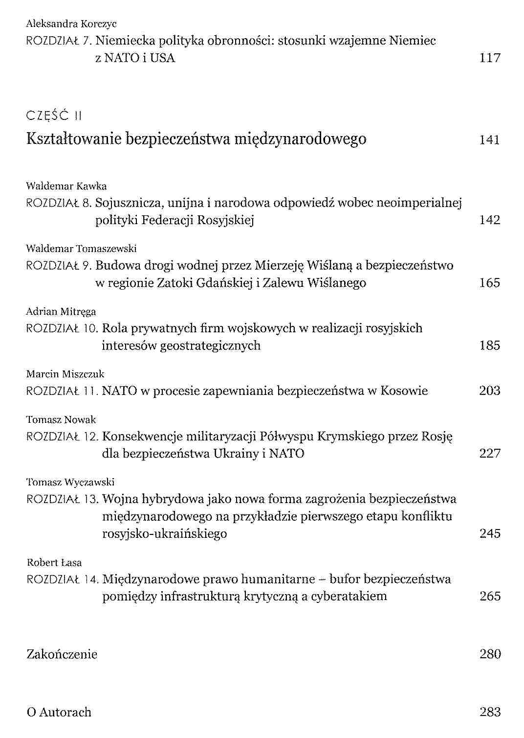 Publikacja prezentuje współczesne problemy bezpieczeństwa międzynarodowego w odniesieniu do zagrożeń, które są kreowane przez Federację Rosyjską. Wyjaśnia wybrane problemy zarówno teorii, jak i praktyki kształtowania bezpieczeństwa, które zdeterminowane są agresywnymi działaniami Federacji Rosyjskiej. Monografia adresowana jest do teoretyków i praktyków zajmujących się problematyką środowiska bezpieczeństwa międzynarodowego. Może być też w kręgu zainteresowania osób parających się oddziaływaniem Federacji Rosyjskiej na arenie międzynarodowej oraz zagrożeniami i ich konsekwencjami dla bezpieczeństwa globalnego, regionalnego i lokalnego. Może stanowić źródło wiedzy dla podmiotów odpowiedzialnych za zapewnianie bezpieczeństwa narodowego, odpowiedzialnych za pozyskiwanie zdolności do przeciwdziałania zagrożeniom, a także szerokiego środowiska naukowego związanego z dyscyplinami nauk o bezpieczeństwie i polityce.