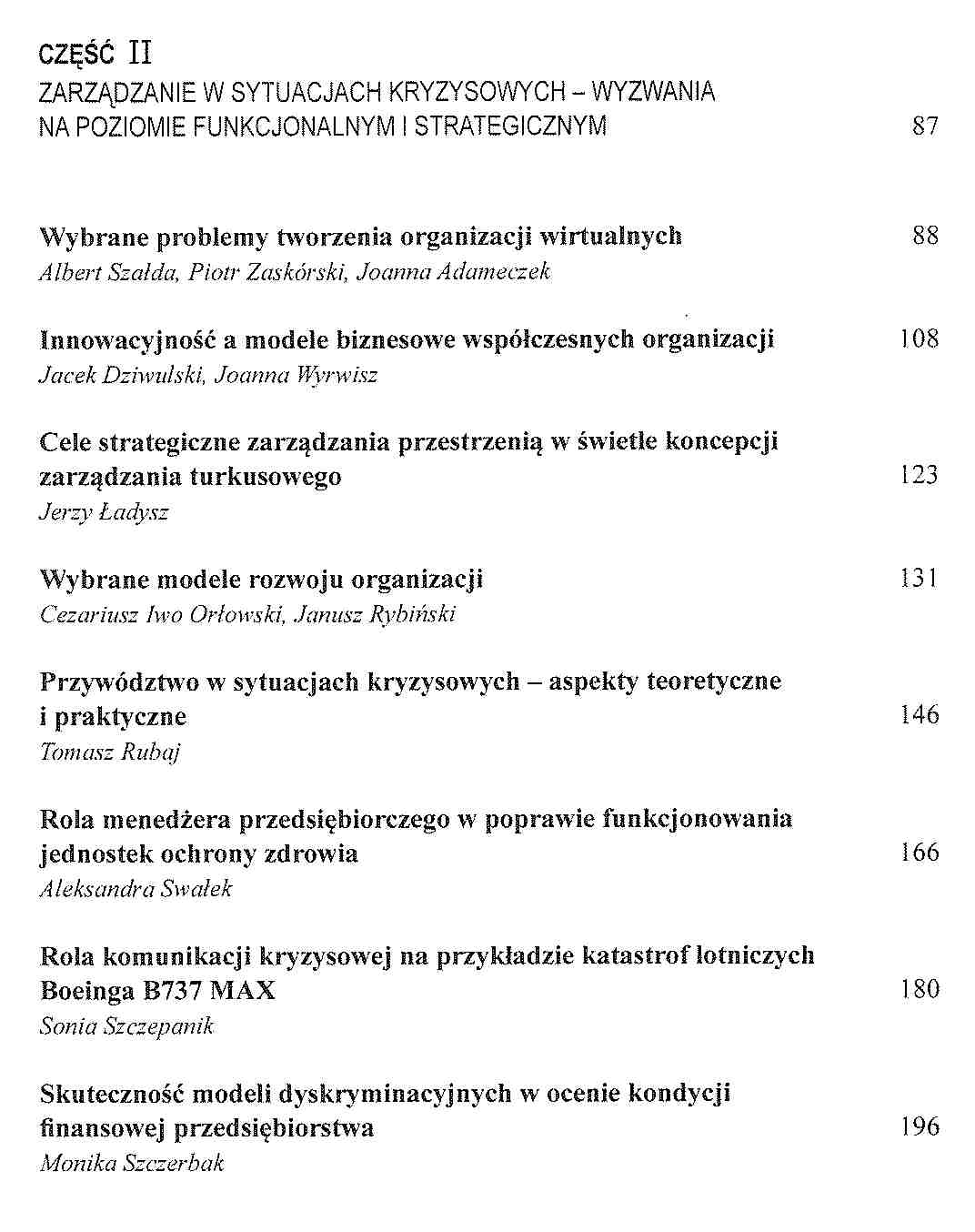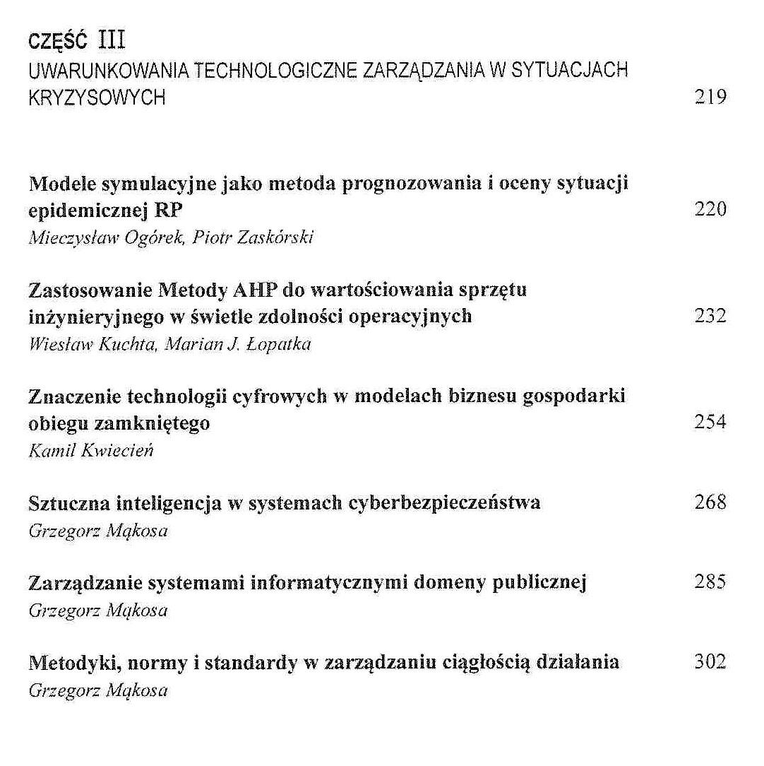 W publikacji Autorzy przedstawili związki teorii i praktyki zarządzania z perspektywy sytuacji kryzysowych, z jakimi przyszło się mierzyć organizacjom w XXI w. Część teoretyczną monografii wzbogacono wynikami oryginalnych badań oraz danymi wtórnymi. Zamieszczone teksty podzielono na trzy wzajemnie się przenikające obszary tematyczne. Pierwsza część opracowania skupia się na problematyce zarządzania w obliczu pandemii COVID-19. W części drugiej zgromadzono wyniki badań dotyczących zarządzania sytuacją kryzysową z perspektywy strategicznych i funkcjonalnych poziomów działania organizacji. W szczególności analizowane są kwestie przywództwa, komunikacji, finansów i bezpieczeństwa. Ostatnia część monografii poświęcona jest uwarunkowaniom technologicznym sytuacji kryzysowych, w tym m.in.: technologii cyfrowych, sztucznej inteligencji, systemów informatycznych i cyberbezpieczeństwa. Książka, ze względu na wszechstronność i jednocześnie szczegółowość podjętej tematyki, jest kierowana zarówno do środowisk naukowych, jak i szeroko związanych z praktyką gospodarczą.