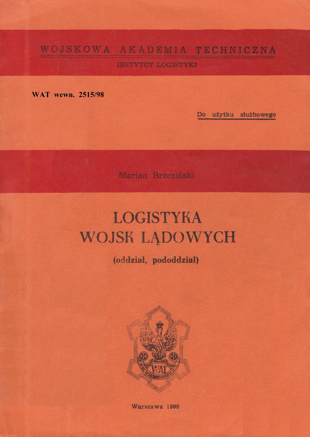 Logistyka wojsk lądowych (oddział, pododdział) / Marian Brzeziński. - Warszawa : WAT, 1998. - 318s. : 31 rys., 36 tab., bibl. ; 20,5cm.