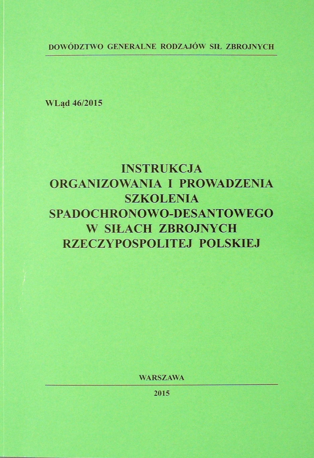 Streszczenie: Ogólne zasadyprowadzenia Szkolenia Spadochronowo-Desantowego. Obowiązki dowodców i zakres działalnosci komórek funkcjonalnych Służby Spadochronowo-Desantowej. Szkolenie Spadochronowo-Desantowe Podstawowe (SSDPo). Szkolenie Spadochronowo-Desantowe Uzupełniające (SSDU). Szkolenie Spadochronowo-Desantowe Praktyczne (SSDPr). Szkolenie Spadochronowo-Desantowe Specjalistyczne (SSDS)