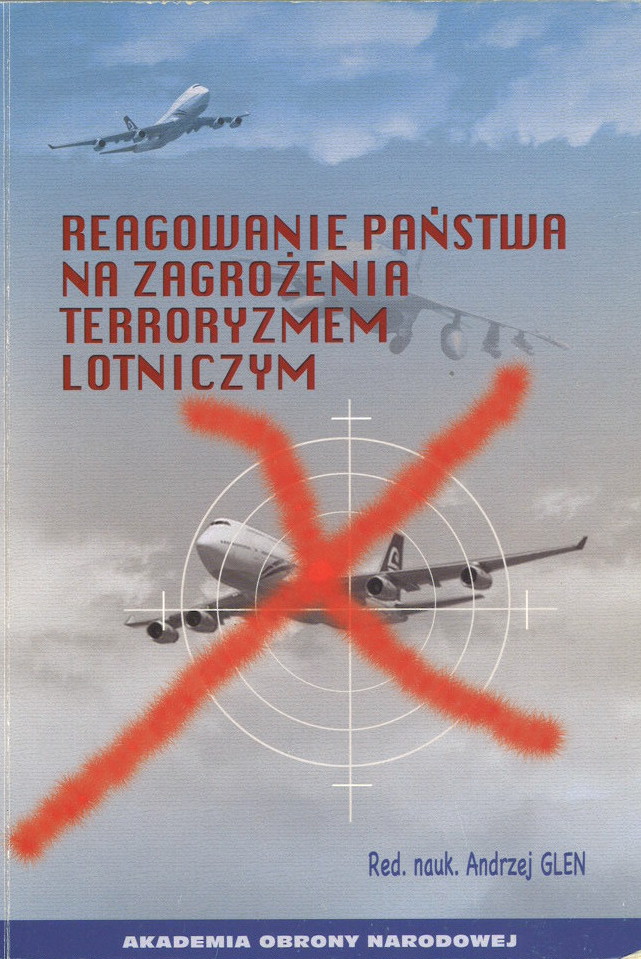 Streszczenie: Uwarunkowania: podstawy poznawcze systemu reagowania państwa na zagrożenia terroryzmem lotniczym, zagrożenie terroryzmem lotniczym w XXI wieku, obiekty naziemne zagrożone terroryzmem lotniczym, podstawy prawne reagowania na zagrożenia terroryzmem lotniczym. Reagowanie w lotnictwie cywilnym: Udział Polskiej Agencji Żeglugi Powietrznej w reagowaniu na zagrożenia terroryzmem lotniczym, ochrona portów lotniczych przed zagrożeniami terrorystycznymi, doświadczenia linii lotniczych El Al w reagowaniu na zagrożenia terroryzmem lotniczym, nadzór Urzędu Lotnictwa Cywilnego nad procesem reagowania na zagrożenia terroryzmem lotniczym w lotnictwie cywilnym. Reagowanie wojsk, straży i służb: siły zbrojne w walce z terroryzmem lotniczym, funkcjonowanie stref zakazu lotów wprowadzanych w celu ochrony miejsca i osób przed zagrożeniami terroryzmem lotniczym, straż graniczna w reagowaniu na zagrożenia terroryzmem lotniczym, policja w reagowaniu na zagrożenia terroryzmem lotniczym.