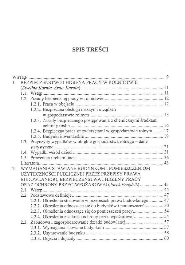Streszczenie: Bezpieczeństwo i higiena pracy w rolnictwie, wymagania stawiane budynkom i pomieszczeniom użyteczności publicznej przez przepisy prawa budowlanego, bezpieczeństwa i higiena pracy oraz ochrony przeciwpożarowej, ratownictwo chemiczne, karta charakterystyki substancji niebezpiecznej i preparatu niebezpiecznego, ocena ryzyka zawodowego w systemie zarządzania bhp.