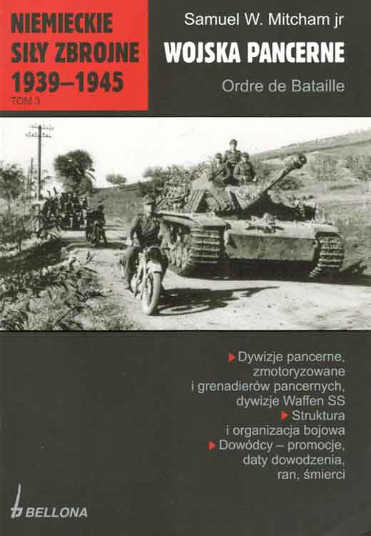 Streszczenie: Celem tej książki jest przedstawienie Ordre de Bataille niemieckich wojsk lądowych w II wojnie światowej z uwzględnieniem każdej dywizji od momentu jej stworzenia do zniszczenia. Autor, tak dalece, jak było to możliwe, wymienił wszystkich dowódców dywizji i okresy, w jakich nimi dowodzili. Odnotował również ich promocje, ranienia i śmierć w trakcie służby. Unikatowe wydanie, pierwsze tak szczegółowe zestawienie na polskim rynku.