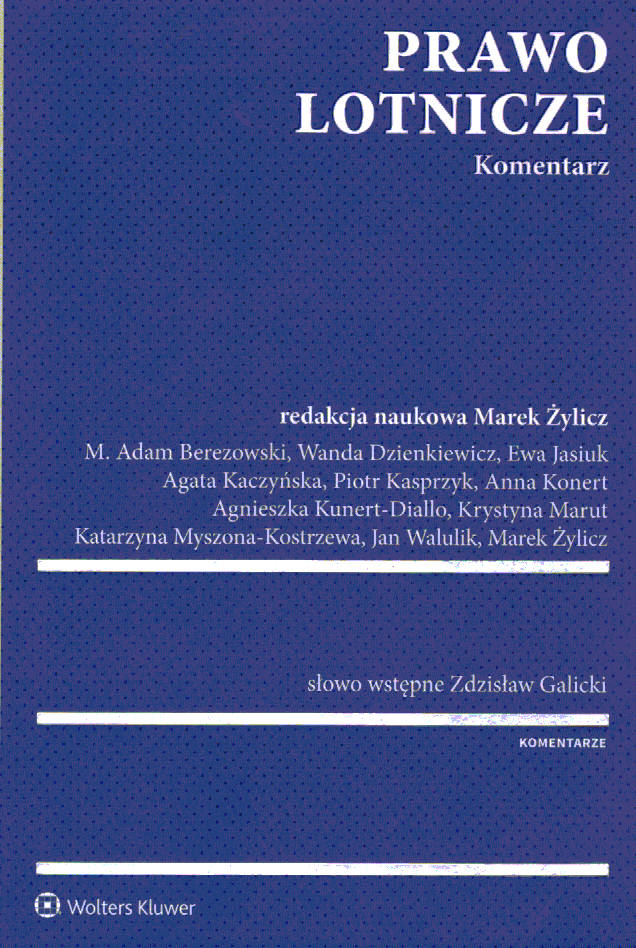 Streszczenie: Komentarz zawiera analizę przepisów ustawy z dnia 3 lipca 2002 r. - Prawo lotnicze regulującej stosunki prawne z zakresu lotnictwa, przede wszystkim cywilnego, ale w pewnej części również państwowego. Na pojęcie lotnictwa, do którego odnoszą się stosunki prawne normowane przez prawo lotnicze, składają się takie jego podstawowe elementy, jak: przestrzeń powietrzna, statki powietrzne, załogi statków powietrznych, właściciele i użytkownicy (operatorzy) statków powietrznych, podmioty wykonujące przewóz lub inne usługi lotnicze, podmioty obsługujące oraz zabezpieczające eksploatację i ruch statków powietrznych, infrastruktura naziemna lotnictwa i jej strefy ochronne. Autorzy - prawnicy, eksperci w zakresie międzynarodowego i krajowego prawa lotniczego - wskazali również na inne krajowe przepisy, które muszą być uwzględnione przy stosowaniu prawa lotniczego (np. rozporządzenia wykonawcze), oraz na obowiązujące w danym zakresie przepisy międzynarodowe, w tym unijne, powołując się w miarę potrzeby na odpowiednie orzecznictwo i literaturę przedmiotu.