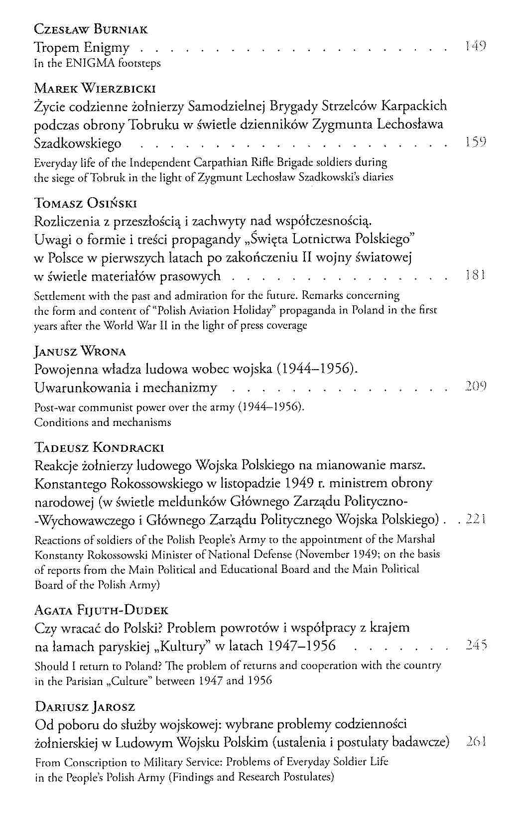 Drugi tom publikacji dotyczący analizy stosunków między wojskiem a społeczeństwem polskim w XIX i XX w. Zawiera zagadnienia historii Wojska Polskiego w czasie II RP, II wojny światowej oraz w okresie PRL. Opisano również historię Ceremoniału Wojskowego Sił Zbrojnych Rzeczypospolitej Polskiej.