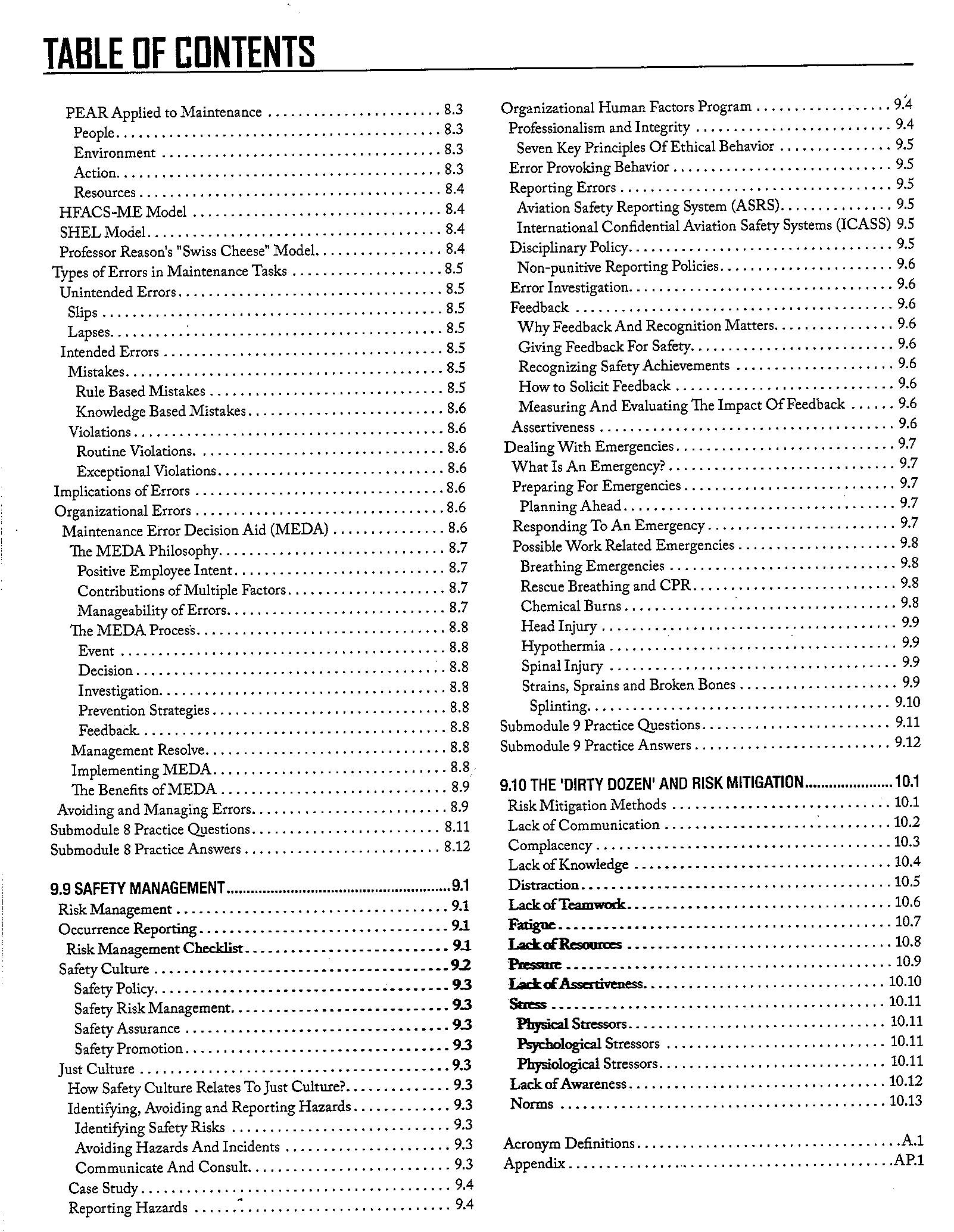 Human Factors : Module 9 (CAT -A/B1/B2) - Tabernash : Aircraft Technical Book Company, 2024 - XII, 1.1-10.14, 8 s.: rys., wykr.; 28 cm.