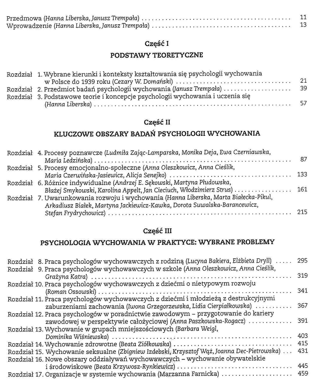 Psychologia wychowania. Wybrane problemy to pierwsza od wielu lat publikacja podsumowująca rozproszony dorobek polskiej psychologii wychowania na tle literatury światowej. Autorami poszczególnych rozdziałów są wybitni badacze i praktycy z kilkunastu ośrodków akademickich w Polsce. Publikacja Psychologia wychowania. Wybrane problemy składa się z trzech części: Podstawy teoretyczne – zgromadzono tu wiedzę na temat historii kształtowania się psychologii wychowania do 1939 roku, scharakteryzowano psychologię wychowania jako naukę, precyzując jej przedmiot, cel i stosowane metody. Przedstawiono podstawowe koncepcje teoretyczne psychologii wychowania. Kluczowe obszary psychologii wychowania – Autorzy opisali tu znaczenie procesów poznawczych i emocjonalno-społecznych dla wychowania i rozwoju. Osobne rozdziały zostały poświęcone różnicom indywidualnym oraz biologicznym i środowiskowym uwarunkowaniom rozwoju i wychowania. Psychologia wychowania w praktyce: wybrane problemy – najbardziej obszerna część książki dotyczy takich zagadnień, jak współpraca psychologów wychowawczych z rodziną i szkołą, zadania psychologa wychowawczego wobec dzieci o nietypowym rozwoju, z zaburzeniami zachowania, z grup mniejszościowych. Kolejne rozdziały dotyczą roli psychologów wychowawczych w poradnictwie zawodowym, wychowaniu zdrowotnym, obywatelskim i edukacji seksualnej oraz organizacjom w systemie wychowania. Książkę adresujemy do szerokiego kręgu czytelników zainteresowanych problematyką psychologii wychowania. Może ona zainteresować nie tylko psychologów, lecz także badaczy i studentów innych nauk społecznych oraz praktyków, w tym nauczycieli i rodziców, wychowawców i opiekunów, a nawet działaczy i polityków oświatowych. Problematyka psychologii wychowania staje się współcześnie coraz ważniejsza na skutek z jednej strony rozwoju cywilizacyjnego i technologii informatycznych wypierających w wielu obszarach tradycyjne nauczanie szkolne, rodzinne, moralne, a nawet seksualne, z drugiej zaś strony, w efekcie coraz większej wiedzy, w tym na temat genetycznych i mózgowych warunków zmian w zachowaniu i rozwoju człowieka oraz wydłużającego się życia ludzi w sprawności fizycznej i intelektualnej. Rola psychologów wychowawczych wspomagających rozwój może wkrótce nabrać nowego znaczenia w kontekście coraz częściej zgłaszanych postulatów edukacji spersonalizowanej, wykształcenia nie tyle na „całe życie”, ile „całożyciowego”, konstruowanego indywidualnie stosownie do stale zmieniających się warunków podmiotowych i środowiskowych oraz niedających się przewidzieć wymagań adaptacyjnych w życiu i rozwoju jednostki.