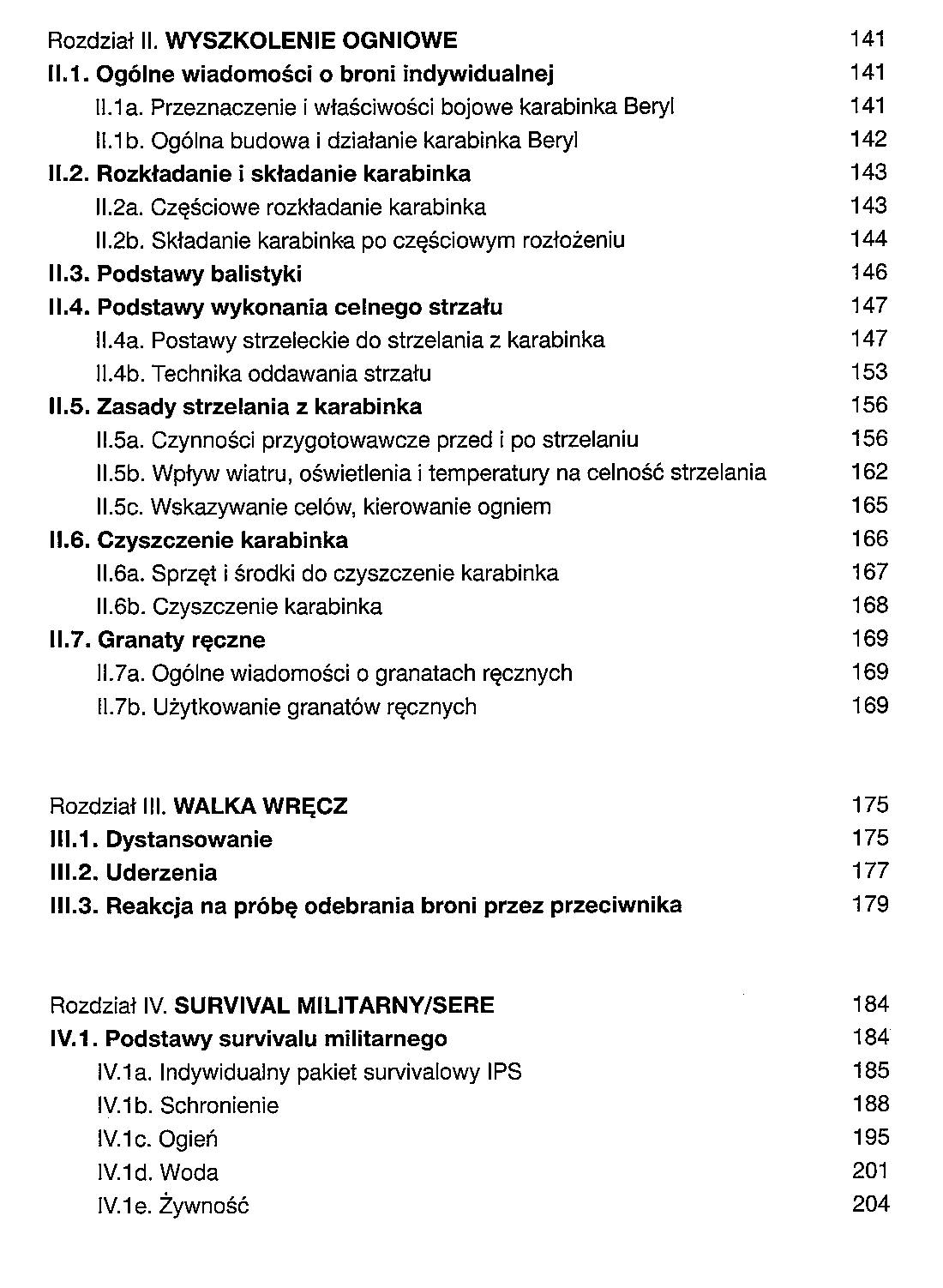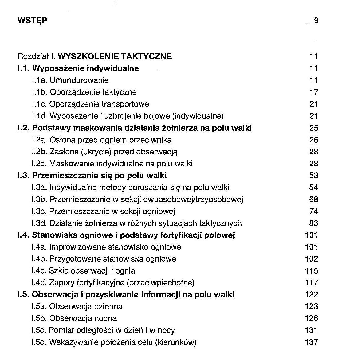 Opis od wydawcy Autorzy omówili podstawowe elementy niezbędne w ramach podstawowego szkolenia taktycznego żołnierza i pododdziału do szczebla sekcji ogniowej. W przygotowaniu publikacji oparto się na dostępnej literaturze przedmiotu, wykorzystując w tym zakresie doświadczenia sił zbrojnych NATO: USA, Kanady, Wielkiej Brytanii, Francji oraz Wojska Polskiego. Po raz pierwszy autorzy sięgnęli również po szeroko cytowaną w pracy literaturę w języku rosyjskim (byłe ZSRR, Federacja Rosyjska) oraz z Ukrainy i Białorusi, tak aby przybliżyć odbiorcom także tamtejszą szkołę taktyczną. Synteza ujmuje także wiele doświadczeń własnych, wynikających z wieloletniej pracy szkoleniowej autorów w organizacjach proobronnych. Struktura opracowania wynika z przyjętych przez autorów założeń. W rozdziałach kolejno omawiane są: • wyszkolenie taktyczne, • wyszkolenie ogniowe, • walka wręcz, • survival militarny, • łączność. Publikacja adresowana jest do szerokiego kręgu odbiorców: członków stowarzyszeń proobronnych, środowisk ASG, a także żołnierzy, którym może służyć za pomoc w procesie szkolenia.