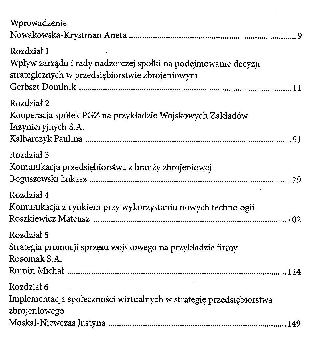 Epoka globalizacji, gospodarki elektronicznej bazująca na wiedzy wymaga współpracy między organizacjami. Umiejętność kooperacji staje się niezbędnym czynnikiem sukcesu każdego podmiotu gospodarczego. Współczesny biznes wymaga tworzenia nowych modeli biznesowych ułatwiających współpracę, nawiązywanie relacji poza granicami organizacji. Na rynku obserwujemy budowanie sieci przedsiębiorstw, procesów łączeniowych z instytucjami badawczo-rozwojowymi, czy dostawcami materiałów, jak również klientów. W związku z czym celem monografii jest przedstawienie wybranych aspektów związanych z tworzeniem związków relacyjnych na rynku zbrojeniowym. Problem ten przedstawiono w sześciu rozdziałach.
