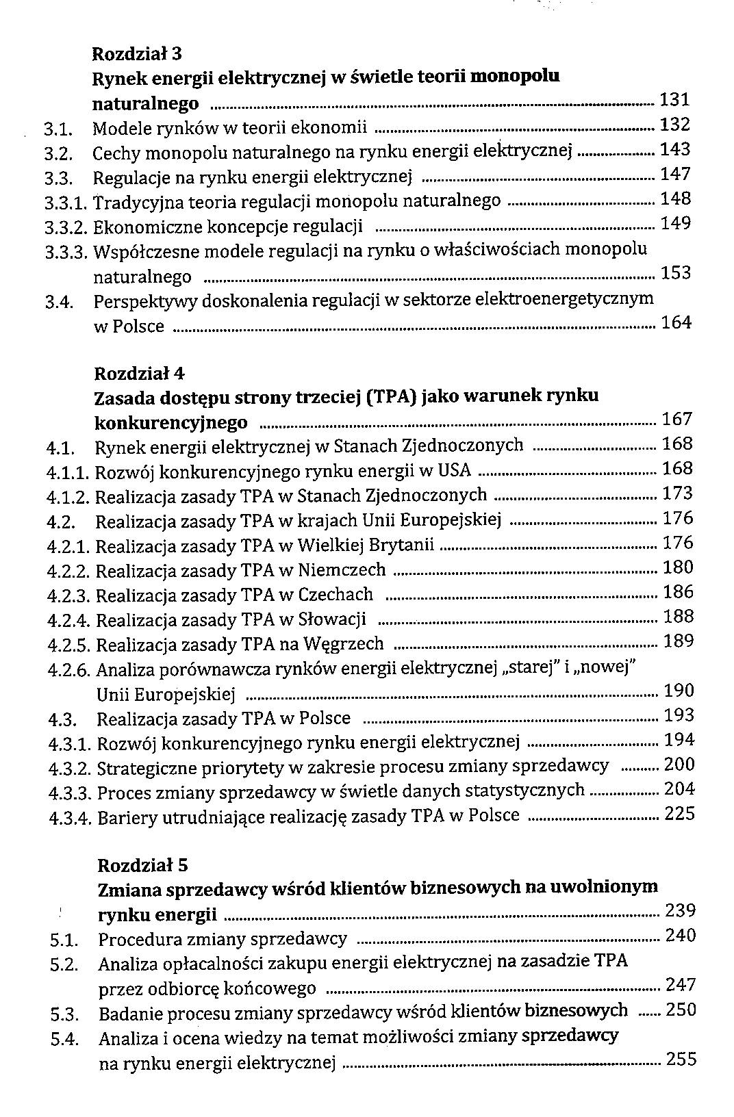 Celem głównym monografii jest ocena oddziaływania zasady TPA na proces zmiany sprzedawcy na rynku energii elektrycznej. Z celu głównego wynikają cele szczegółowe rozprawy: identyfikacja barier i perspektyw wykorzystania zasady TPA na rynku energii w Polsce; analiza wykorzystania zasady TPA w procesie zmiany sprzedawcy wśród klientów biznesowych; analiza wykorzystania zasady TPA w procesie zmiany sprzedawcy wśród klientów indywidualnych; identyfikacja, analiza i ocena czynników zmiany sprzedawcy w firmie sprzedającej energię elektryczną; ocena wykorzystania zasady TPA w procesie zmiany sprzedawcy, a w szczególności: wpływ na kształtowanie cen dla nabywców, wpływ na wolumen energii i zysk dla firmy sprzedającej energię elektryczną. Przedmiotem badań zamieszczonych w monografii jest proces zmiany sprzedawcy na rynku energii elektrycznej w Polsce. Wyniki badań mają charakter poznawczy i empiryczny. Aspekt poznawczy związany jest z analizą i oceną poziomu zastosowania zasady TPA w obszarze sprzedaży energii elektrycznej. Badania empiryczne i ich wyniki skierowano do trzech grup odbiorców: klientów indywidualnych, którzy zmienili lub planują zmianę sprzedawcy prądu, klientów biznesowych, którzy zmienili lub planują zmianę sprzedawcy prądu, firmy energetycznej sprzedającej energię elektryczną.