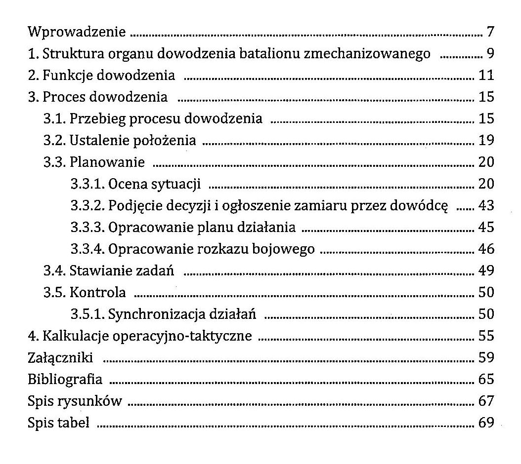 Proces dowodzenia na szczeblu batalionu zmechanizowanego należy postrzegać jako uzupełnienie zapisów obowiązującego w Siłach Zbrojnych RP dokumentu Planowanie działań na szczeblu taktycznym w wojskach lądowych, DD.3.2.5, DWLąd, Warszawa 2006. Intencją autora przedmiotowego skryptu jest wyjaśnienie procedury przygotowania i prowadzenia działań taktycznych przez obsadę stanowiska dowodzenia batalionu zmechanizowanego. Proces dowodzenia obejmuje cztery fazy: ustalenie położenia, planowanie, stawianie zadań, kontrolę. Metody, narzędzia oraz dokumenty, opisane w skrypcie w możliwie skróconej formie, pozwalają efektywnie planować, organizować i prowadzić walkę przez organy dowodzenia na poziomie taktycznym. W celu łatwiejszego zrozumienia przede wszystkim procedur planowania działań i prowadzenia kontroli wojsk przedstawiono przykłady: sprecyzowanego zadania własnego, myśli przewodniej, planu pracy dowództwa, oleatu dróg podejścia i korytarzy manewru, wzorca doktrynalnego, wariantu działania i jego rozważenia, przeprowadzenia synchronizacji działań. Uzupełnieniem tych przykładów są warianty prowadzenia odpraw: informacyjnej, koordynacyjnych, decyzyjnej.