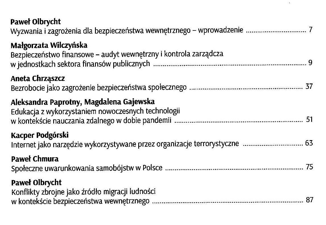 Monografia stanowi trzecią część serii wydawniczej „Wybrane aspekty bezpieczeństwa wewnętrznego”. Obie poprzednie części ukazały się nakładem Wydawnictwa Akademii Wojsk Lądowych. Pierwsza część: „W trzy dekady po upadku dwubiegunowego układu świata” w 2020 r., natomiast druga: „Studia przypadków” w 2021 r. Ideą, jaka przyświecała powstaniu monografii, było opublikowanie wyników prowadzonych w obszarze bezpieczeństwa wewnętrznego rozważań naukowych w kontekście wyzwań, które występują w działalności zarówno jednostek, jak i podmiotów publicznych oraz zagrożeń utrudniających realizację tychże wyzwań. Podobnie jak w przypadku poprzednich dwóch części serii wydawniczej, pomimo głównej koncentracji badawczej na dyscyplinie nauki o bezpieczeństwie, ze względu na poruszaną tematykę, monografia adresowana jest także do badaczy z innych dyscyplin nauk społecznych, takich jak nauki o polityce i administracji, czy nauki socjologiczne. Ze względu na obszerność analizowanej w monografii tematyki, przedstawione wyniki badań naukowych nie wyczerpują w pełni możliwości poznawczych. Mogą jednak stanowić źródło wykorzystywane w procesie dydaktycznym, a także zachęcić do prowadzenia dalszego dyskursu w zakresie zagrożeń bezpieczeństwa wewnętrznego.