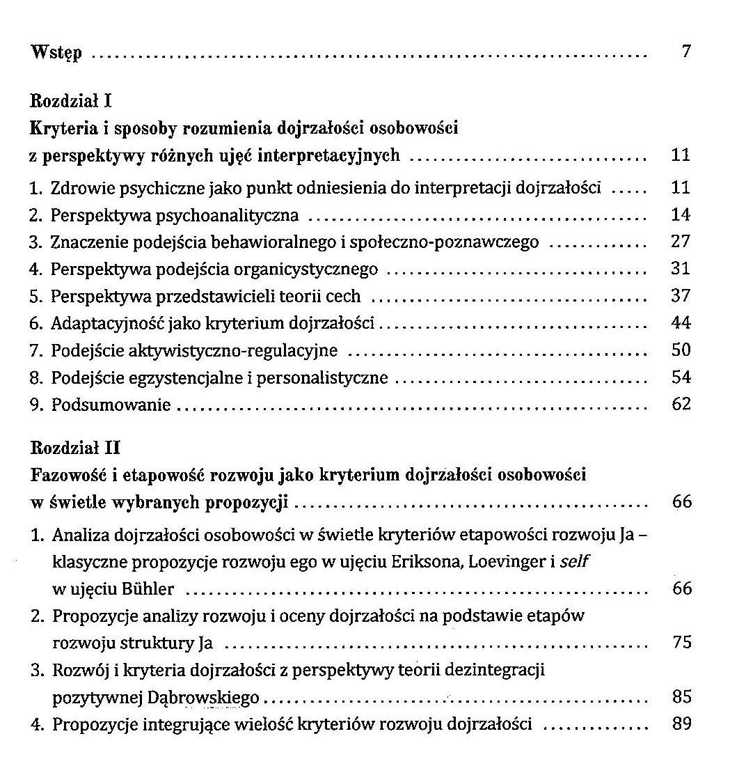 Przedstawiana monografia stanowi przegląd dominujących sposobów rozumienia dojrzałości osobowościowej we współczesnej psychologii z perspektywy różnych podejść do interpretacji samej w sobie osobowości. Autor monografii wskazuje także na szczególnie istotne kryteria dojrzałości akcentowane we współczesnych analizach psychologicznych. Te kryteria są najczęściej sprowadzane do normatywności rozwojowej, do dobrostanu czy moralnej strony osobowości. Kluczowe jednak w interpretacji dojrzałości osobowościowej staje się autorskie personalistyczne podejście, analizowane wcześniej w innych opracowaniach. Jest to oryginalna, dotychczas niepodejmowana forma interpretacji dojrzałości i jej kryteriów.