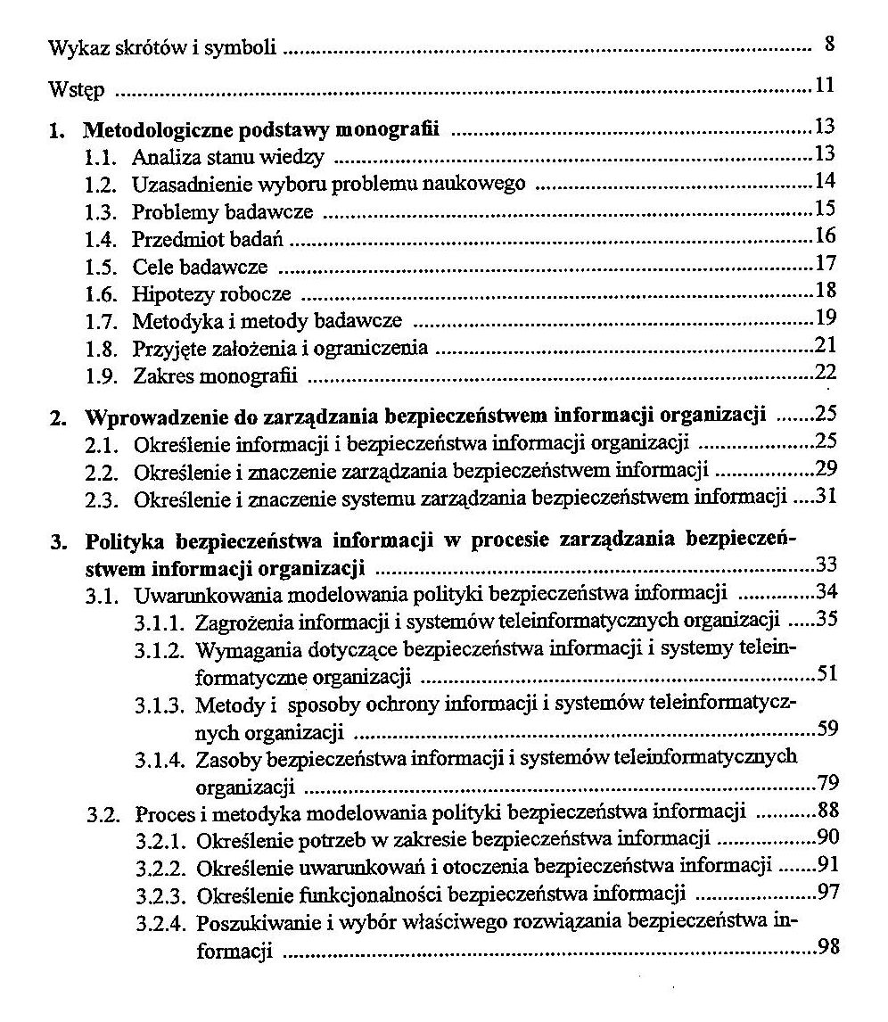 W okresie cywilizacji informacyjnej oraz społeczeństwa informacyjnego w sposób masowy przetwarza się informację. Współcześnie znaczne ilości informacji przetwarzają różnorodne organizacje i stowarzyszenia zarówno w wymiarze międzynarodowym, jak i krajowym. Przetwarzane są także przez zwykłych obywateli. Informacja to wiedza o otaczającym nas świecie, występujących zjawiskach i istniejących procesach, które stymulują rozwój współczesnej rzeczywistości. Prowadzone badania oraz praktyka wskazują, że informacja w cywilizacji informacyjnej (poza dobrem, jakie sobą niesie) stwarza również zagrożenia. Środowisko cyberprzestrzeni, w jakim jest głównie przetwarzana, sprzyja zagrożeniom informacji. Przykładem takiego stanu są rezultaty powszechnie stosowanego Internetu oraz różnorodnych sieci teleinformatycznych, które przetwarzają informacje w publicznych chmurach obliczeniowych. By przeciwdziałać temu niekorzystnemu zjawisku w przetwarzaniu informacji, w sieciach i systemach teleinformatycznych, stosuje się szereg różnorodnych metod i sposobów ochrony informacji, rozwiązań standaryzacyjnych i normalizacyjnych po uregulowania prawne włącznie. Współcześnie występujące i dynamicznie rozwijające się zagrożenia informacji w cyberprzestrzeni, a także stosowane różnorodne rozwiązania ochrony przetwarzanej informacji wymagają działania uporządkowanego i sprzyjającego bezpieczeństwu informacji. Tego rodzaju działania realizowane są przez organizacje w ramach zarządzania bezpieczeństwem informacji. Zarządzanie bezpieczeństwem informacji jest szczególnym sposobem kierowania zasobami osobowymi i materialnymi organizacji, których treścią jest zapewnienie ochrony przetwarzanej informacji w imię osiągania celów biznesowych tej organizacji. W swej istocie dotyczy modelowania i organizowania oraz wdrażania rozwiązań z zakresu bezpieczeństwa informacji, kierowania i zarządzania procesami bezpieczeństwa informacji w celu przeciwdziałania zagrożeniom i zapewnienia jej poufności, integralności oraz dostępności. Niniejsza monografia kierowana jest do osób zajmujących się zarządzaniem bezpieczeństwem informacji w różnych organizacjach, zajmujących się modelowaniem bezpieczeństwa informacji oraz tych osób, które zajmujących się ochroną informacji. Monografia kierowana jest do środowiska naukowego związanego z bezpieczeństwem informacji oraz studentów poznających i studiujących problemy z tym związane.