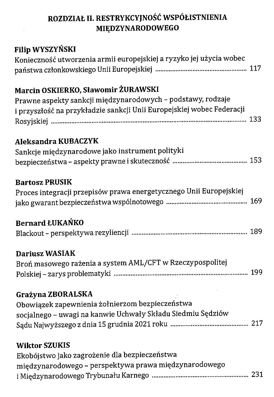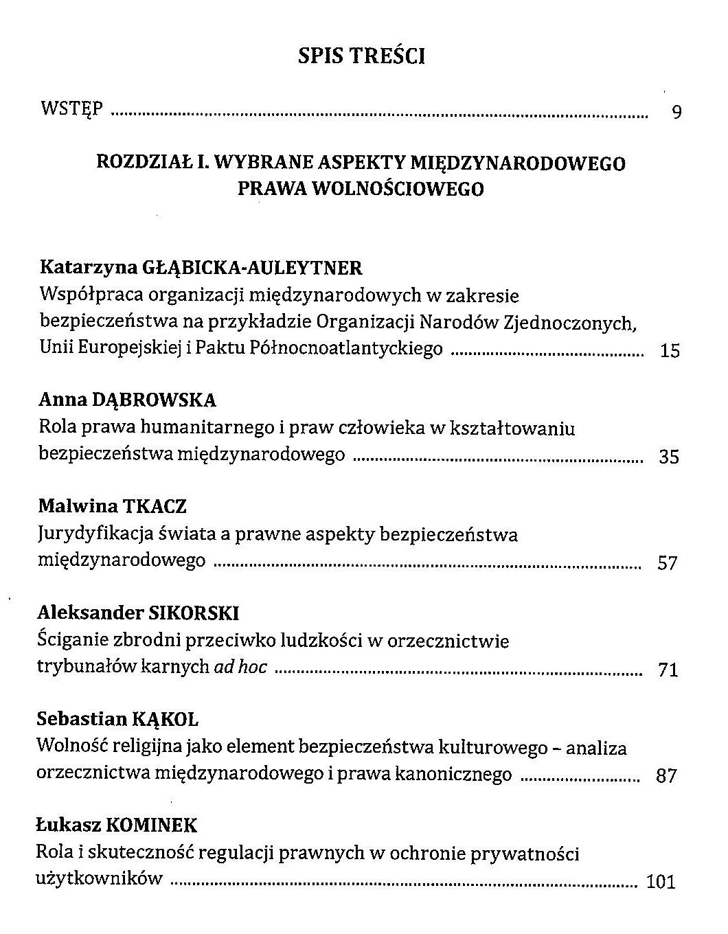 Szeroko rozumiana tematyka bezpieczeństwa wymaga odwołania do dorobków różnych dyscyplin humanistycznych i społecznych, takich jak filozofia, psychologia, socjologia, politologia, stosunki międzynarodowe, a także nauki prawne. Dlatego zdecydowanie można stwierdzić, że jako obszar badań ma charakter interdyscyplinarny, co jest niewątpliwe zaletą, ponieważ zmusza do zmierzenia się z wąską specjalizacją, która w rzeczywistości ogranicza naukę i eliminuje uzupełniający charakter badań. W tym kontekście z zadowoleniem należy zauważyć, że omawiane opracowanie koncentruje się na kwestii międzynarodowego bezpieczeństwa, jednakże patrzy na te sprawy z punktu widzenia prawa. Z recenzji dr. hab. Michała Kowalskiego, prof. ALK
