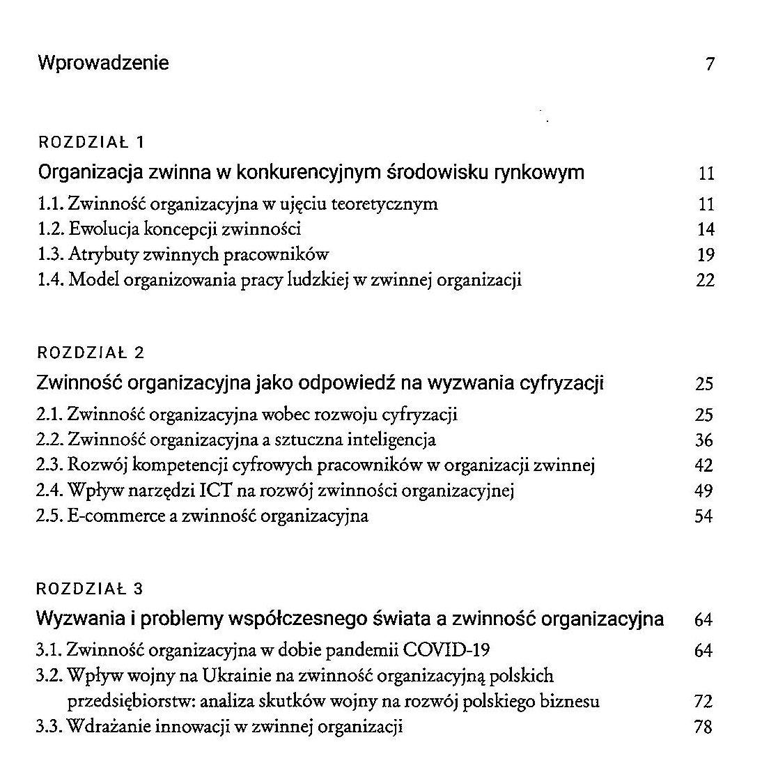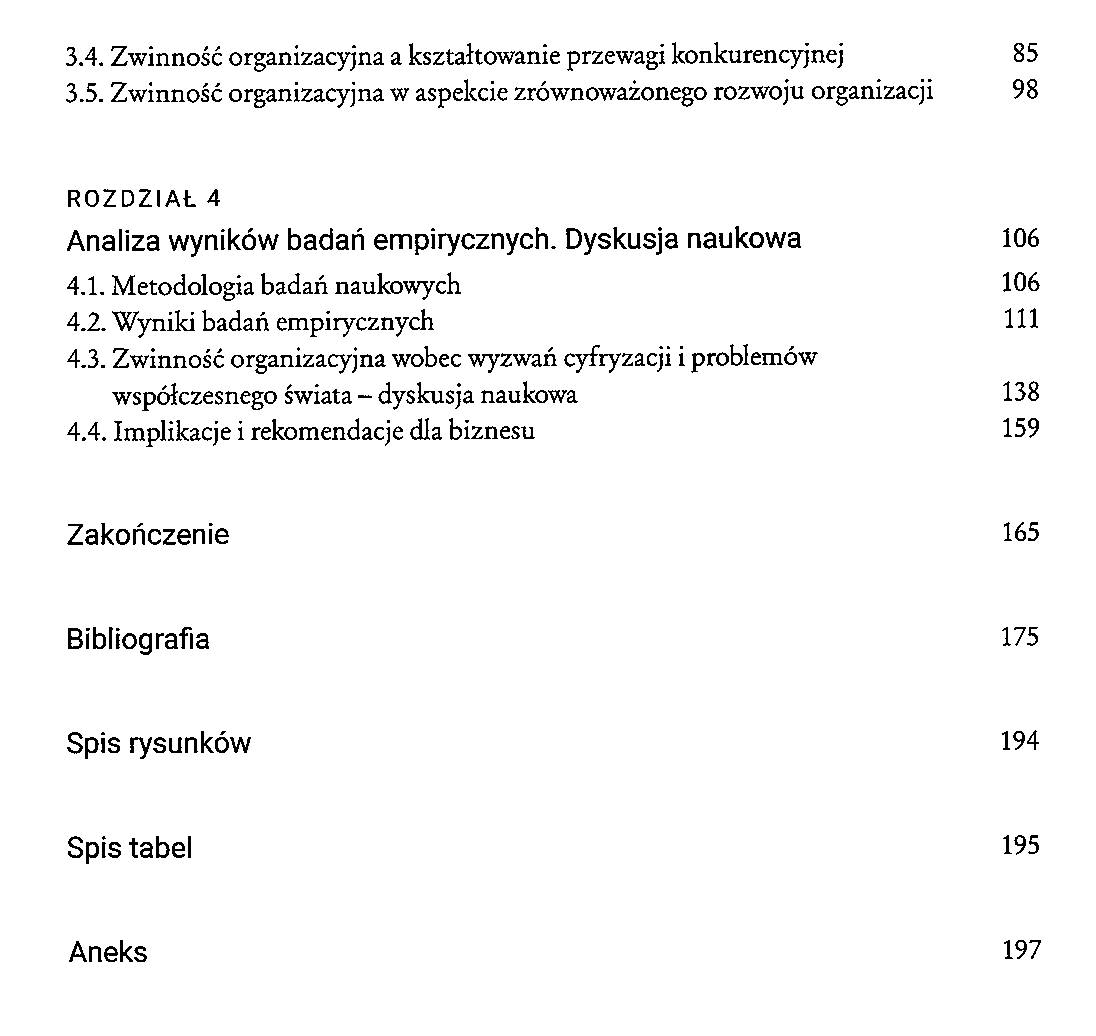 W dzisiejszym szybko zmieniającym się świecie, cyfryzacja jest kluczowym elementem sukcesu dla organizacji. Aby sprostać wyzwaniom cyfrowej transformacji, organizacje muszą być elastyczne i gotowe do adaptacji do nowych technologii i trendów. Zwinność organizacyjna oznacza zdolność do efektywnego reagowania na zmiany w otoczeniu i szybkiego dostosowania się do nowych warunków. Wyzwania cyfryzacji mogą obejmować rosnące oczekiwania klientów co do personalizacji usług, konkurencję ze strony nowych graczy na rynku, oraz konieczność ciągłego aktualizowania i rozwijania infrastruktury technologicznej. Organizacje, które nie są wystarczająco zwinne, mogą mieć trudności z utrzymaniem konkurencyjności i zapewnieniem długoterminowego sukcesu. Zwinność organizacyjna jest również kluczowa wobec problemów współczesnego świata, takich jak zmiany klimatyczne, pandemie, czy napięcia społeczne. Organizacje muszą być gotowe do szybkiego reagowania na takie kryzysy i adaptacji swoich procesów, aby przetrwać i prosperować w trudnych warunkach. Prezentowana publikacja zawiera szereg analiz i interpretacji, które mają na celu wzbogacenie zrozumienia roli zwinności organizacyjnej w dobie cyfryzacji. Książka ta ma na celu służyć zarówno badaczom, jak i praktykom, oferując nowe perspektywy na temat zwinności organizacyjnej i jej roli w dzisiejszych organizacjach.