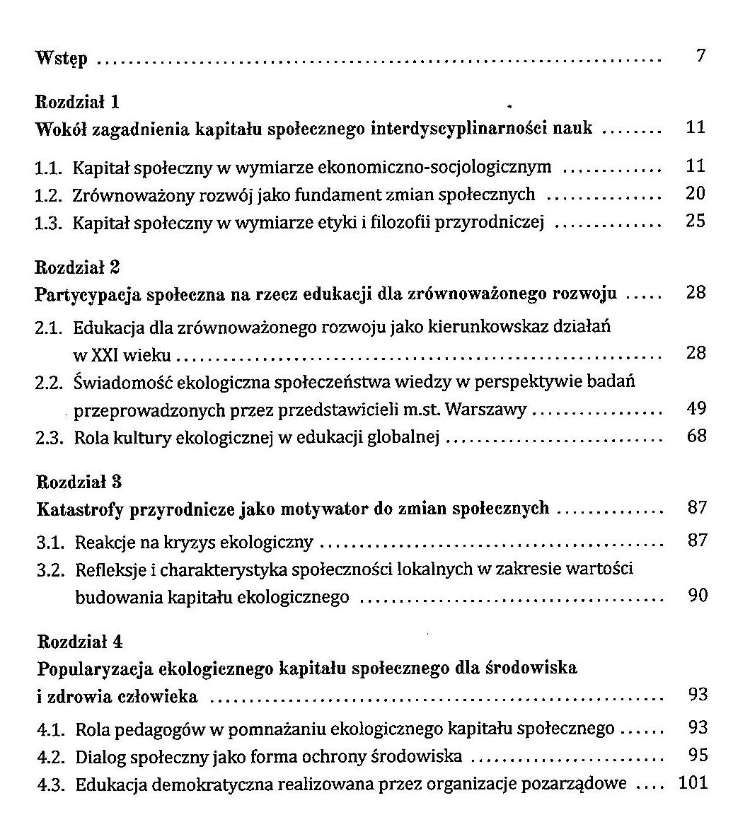Świadomość społeczna z zakresu konieczności budowania ekologicznego kapitału jest kluczowym zagadnieniem w obliczu problemu degradacji środowiska przyrodniczego. Znajomość celów zrównoważonego rozwoju z uwzględnieniem poszanowania dobrobytu kolejnych pokoleń to za mało, aby wdrażać strategię naprawczą na poziomie lokalnym, krajowym i globalnym. Istotna jest aktywizacja społeczeństwa do zastosowania wiedzy w praktycznym ujęciu. Na podstawie wyników badań wykazano, że dialog obywatelski może zagwarantować rozwój w wymiarze ekonomicznym, gospodarczym, politycznym. Rozwój społeczny i wdrażanie partycypacji społecznej w zakresie budowania ekologicznego kapitału przyczyni się do rozwoju w innych obszarach egzystencji społeczeństwa, będąc warunkiem jego zdrowia, a co za tym idzie – dobrobytu.