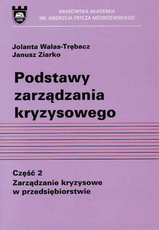 Streszczenie: Kryzys a sytuacja kryzysowa w organizacji. Przedsiębiorstwo w sytuacji kryzysu. Komponenty zarządzania kryzysowego. Wybrane metody wykrywania i przezwyciężania zjawisk kryzysowych w przedsiębiorstwie. Restrukturyzacja - proces ratowania i rozwoju przedsiębiorstwa. Kryzysowa terapia przedsiębiorstw z wykorzystaniem turnaround. Odnowa strategiczna - sposób zmiany modelu biznesu. Przedsiębiorstwa w sytuacjach kryzysu.